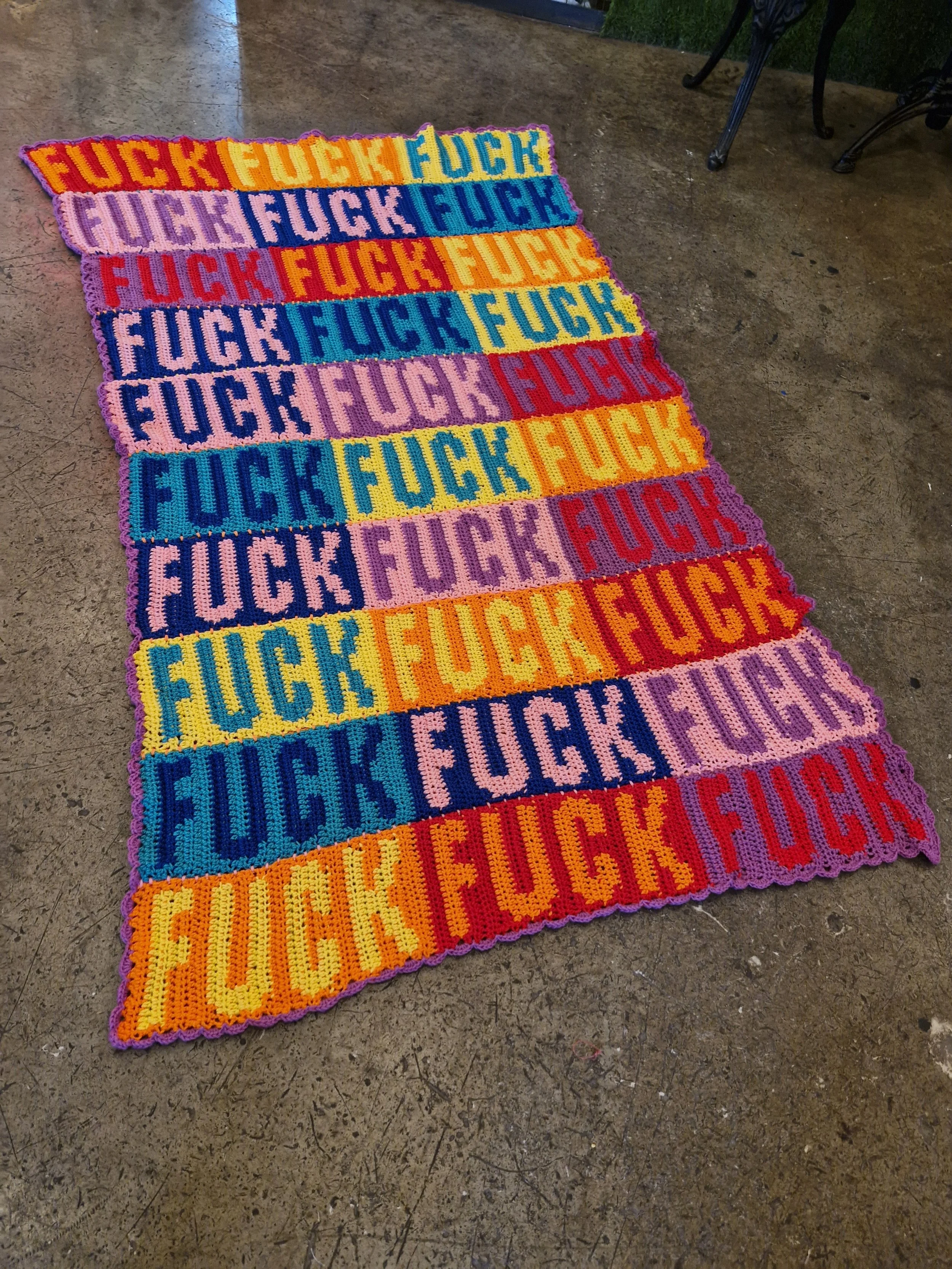 The winner won the Twin Made Throw of Fucks and the four runners up won a Scarf of Fucks each! All the winners have been contacted and their prizes are on their way to you!